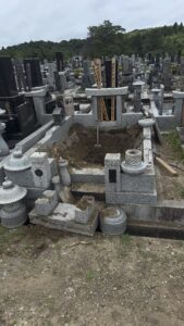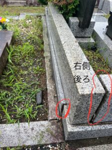 今回のお墓が傾いてしまった原因は、カロート部分が地面に沈み込んでしまったためです。